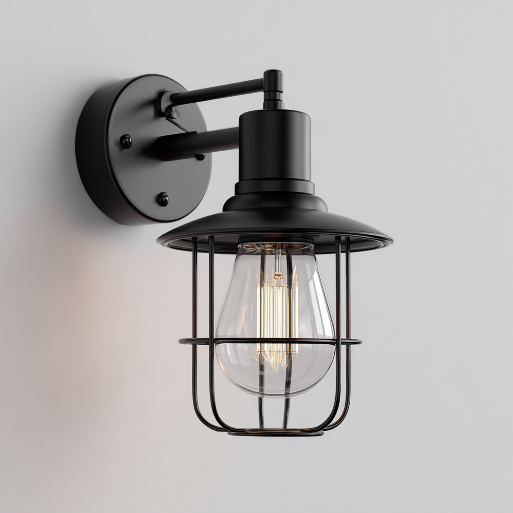 Applique murale métal-verre 18x15x25 cm - noir - adaptée à l'intérieur - style industriel