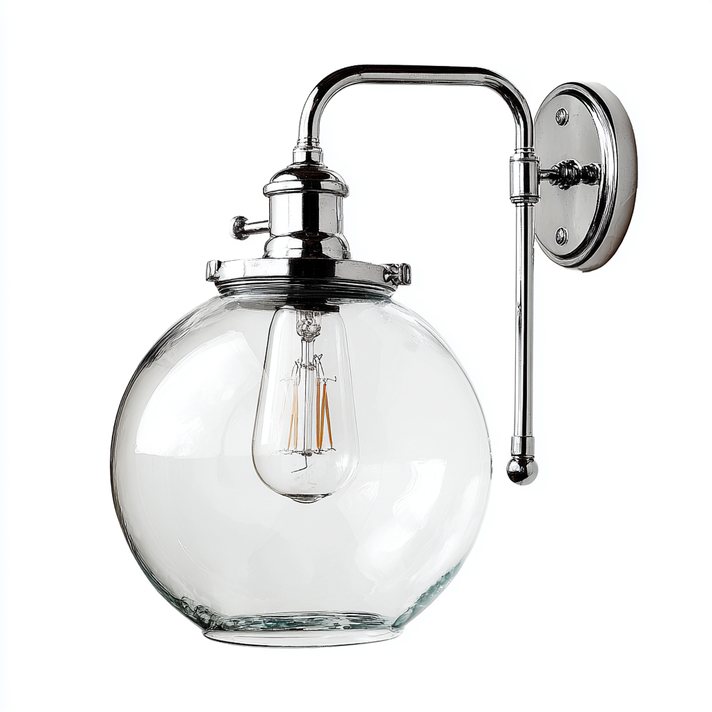 Applique murale métal chromé avec globe en verre transparent 14x12x18 cm - argent-transparent - adaptée à l'intérieur - style moderne