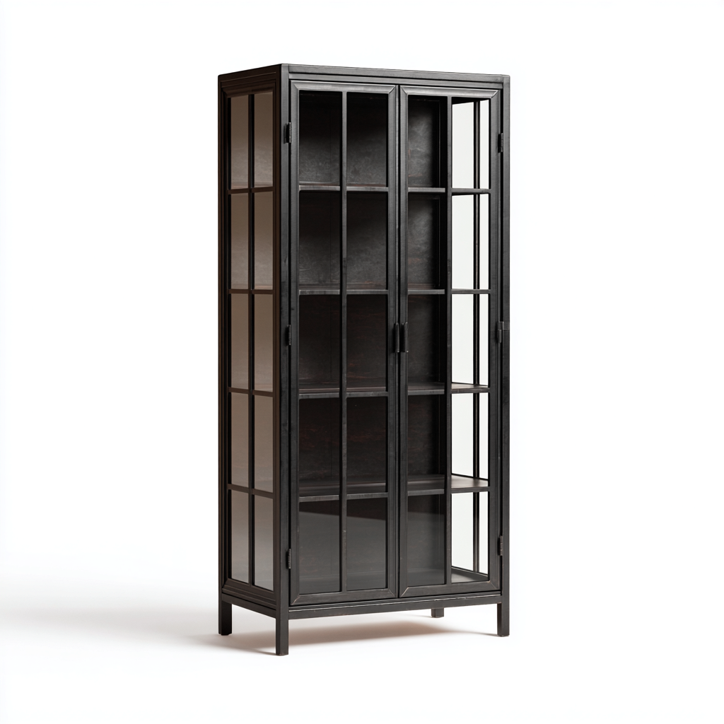 Bibliothèque verre métal 90x40x180 cm - bleu-noir - design moderne pour salon et bureau