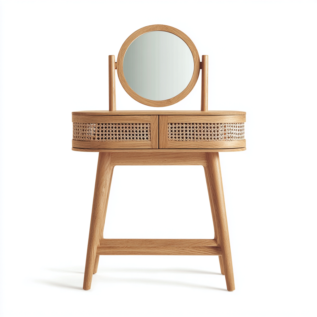 Coiffeuse bois 80x40 cm - chêne clair - design naturel avec miroir adaptée à la chambre
