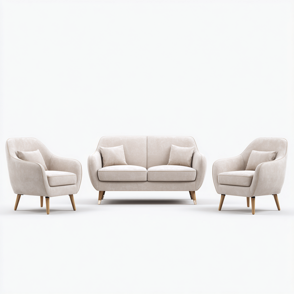 Ensemble de canapés tissu 2 places et fauteuils 180x85 cm - Beige - Salon - Design moderne