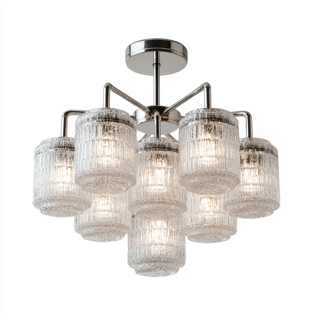 Plafonnier métal et verre 45x45x32 cm - argent-transparent - éclairage décoratif
