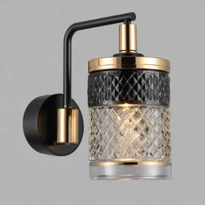 Cette applique murale moderne associe un corps en métal noir et doré à un abat-jour en verre taillé, créant un éclairage décoratif élégant et raffiné. Son design géométrique et ses détails brillants en font un choix idéal pour les salons, chambres et couloirs.
