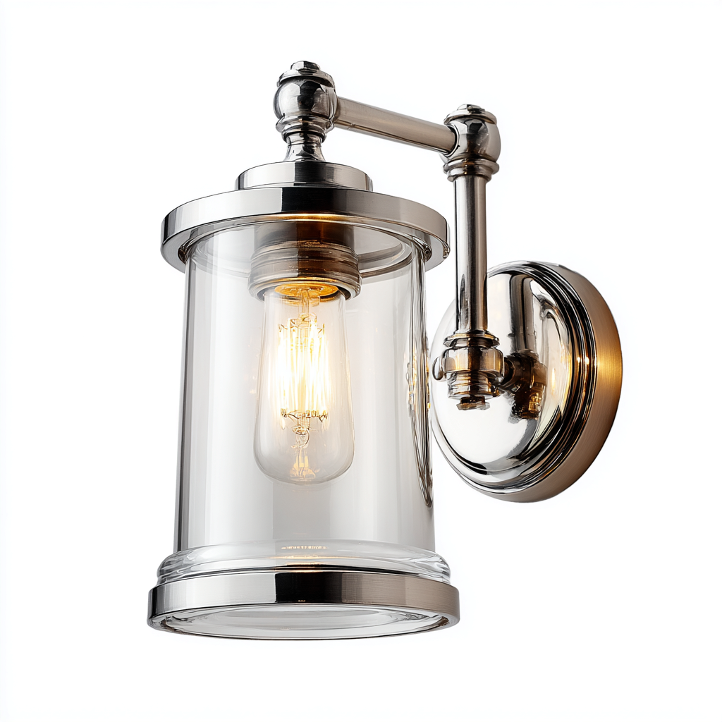 Cette applique murale extérieure associe un corps en métal finition argentée et un abat-jour cylindrique en verre transparent, offrant une esthétique classique moderne. Son design élégant met en valeur la source lumineuse tout en améliorant l'éclairage des zones extérieures.