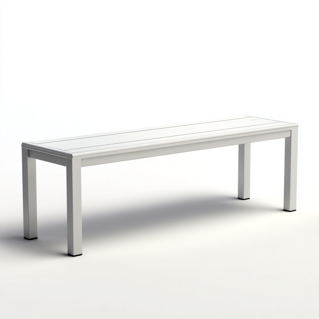Fabriqué entièrement en métal blanc, le banc présente une finition résistante aux conditions extérieures. La surface lisse et uniforme assure une bonne durabilité et un entretien aisé.