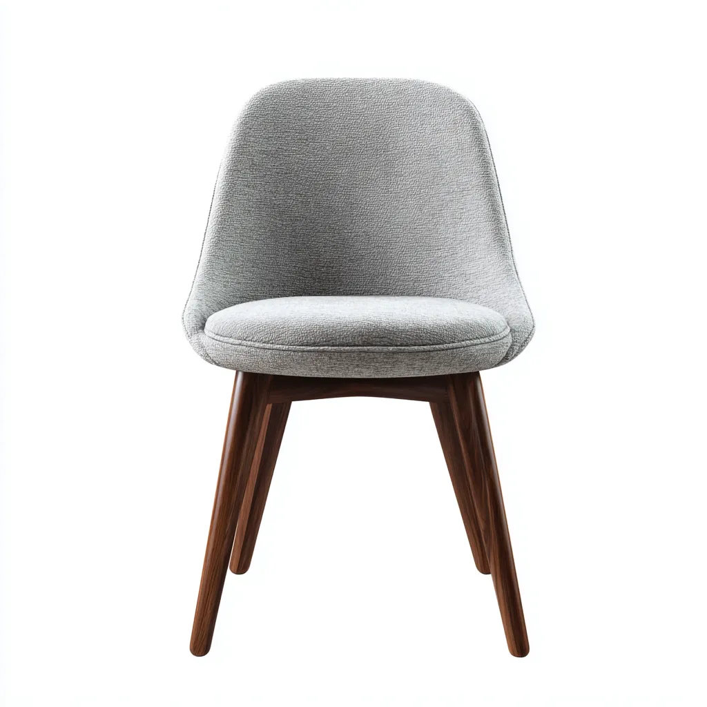 Cette chaise de salle à manger moderne associe une assise en tissu gris à une structure en bois foncé. Son design arrondi et épuré s'adapte facilement aux intérieurs contemporains ou minimalistes.