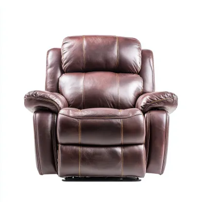 Ce fauteuil relax en cuir marron est conçu pour offrir un confort optimal au quotidien. Son design généreux et enveloppant s'intègre naturellement dans un salon ou un espace détente.