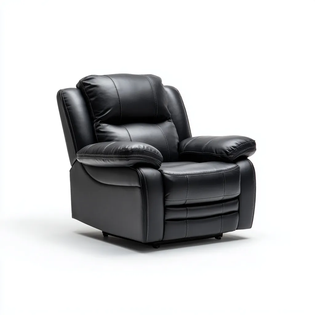 Ce fauteuil relax en cuir noir offre une assise généreuse et enveloppante, pensée pour les moments de détente au salon. Son design sobre et moderne s'intègre facilement dans différents styles d'intérieur.