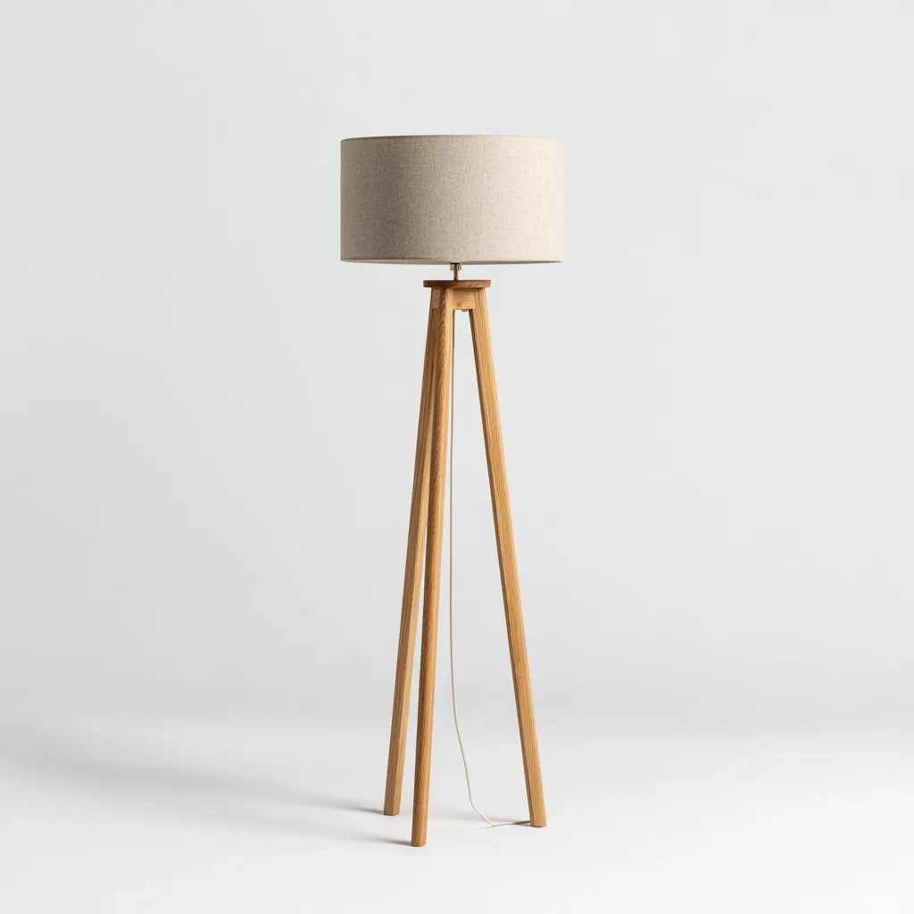 Ce lampadaire trépied en bois clair apporte une esthétique naturelle et épurée, idéale pour créer une ambiance chaleureuse dans un salon, une chambre ou un espace de lecture. Son abat-jour beige diffuse une lumière douce et agréable.