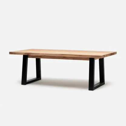Cette table à manger rectangulaire se distingue par un plateau en bois massif associé à un piètement en métal noir, offrant une esthétique industrielle moderne parfaitement adaptée aux espaces repas contemporains.