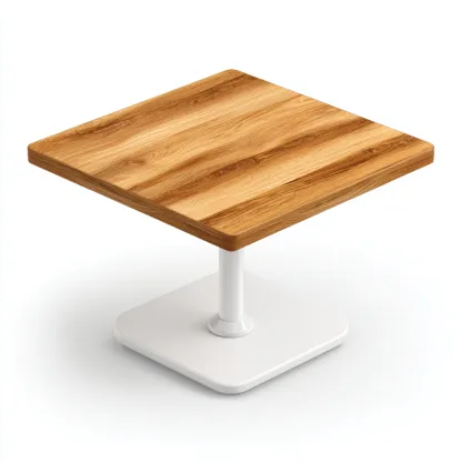 Cette table à manger carrée combine un plateau en bois clair et une base centrale en métal blanc, offrant une esthétique moderne et épurée adaptée aux espaces repas contemporains.