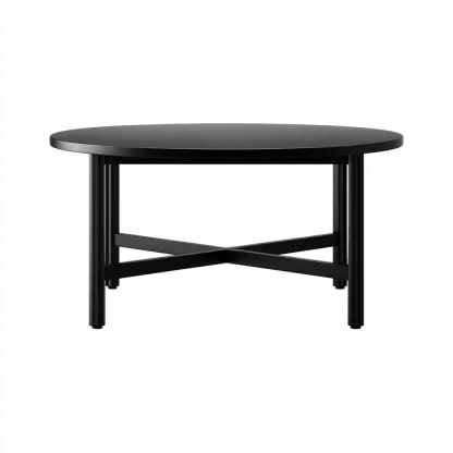 Fabriquée en métal noir, la table dispose d'un plateau résistant aux intempéries ainsi que d'un piètement croisé offrant une durabilité et une rigidité renforcées. La finition lisse facilite l'entretien au quotidien.